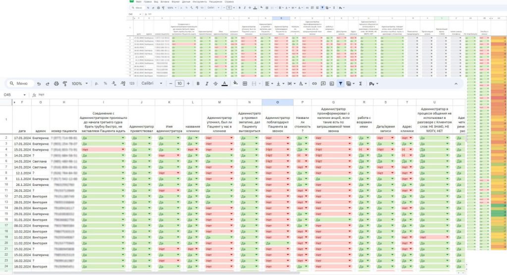 Мы начали с тщательного аудита — прослушали звонки и оценили качество обработки обращений по чек-листу. На основе результатов разработали индивидуальный план обучения для администраторов, с акцентом на психотипы пациентов и правильную работу с голосом. Мы обучили команду подстраиваться под каждого пациента и провели тренинги по этапам продаж. После каждого блока обучения администраторы закрепляли знания на практике, а мы постоянно корректировали их работу.