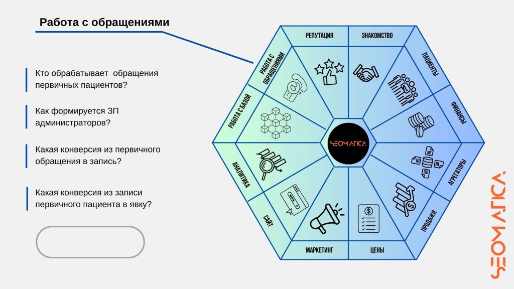 • Системная работа с отзывами и базой пациентов.